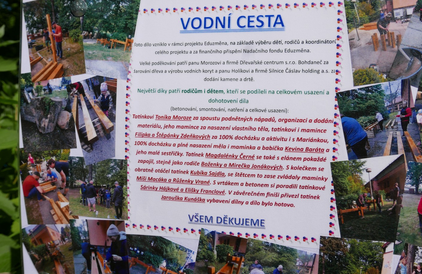 V Lesní školce se díky minigrantu spojili s místním učilištěm. Učni z truhlářského oboru vytvořili dětem dřevěné lisy na květiny. Truhlářští znalci pak byli přizváni i na oslavu 10. narozenin školky, kde spolu s dětmi a jejich rodiči vyráběli dřevěné truhličky na poklady. „Projekt má podpořit vztah učňů k místu, kde žijí, a nabídnout inspiraci i jim, například právě setkáním s mistry jejich oboru,“ vysvětlila Šárka Mrňáková, koordinátorka minigrantu a průvodkyně Lesní školky.
